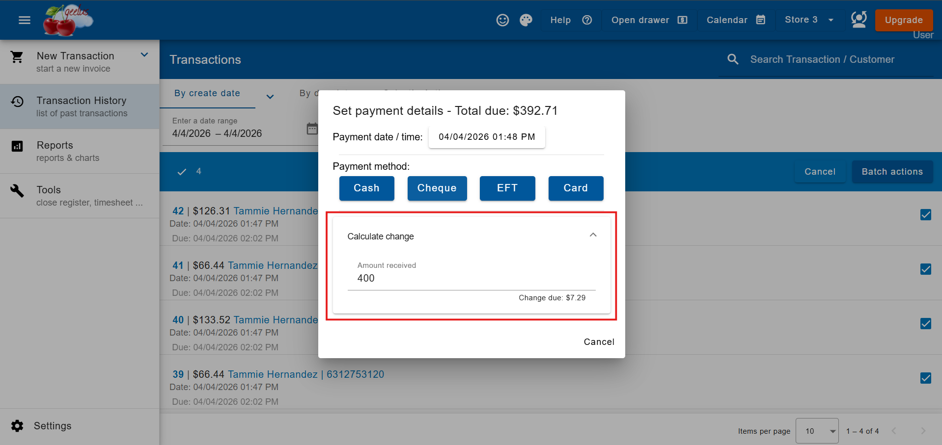 We’ve also improved the change calculation box used during payments for bulk invoices, batch payments, and Select’n Action. This update provides a smoother and more intuitive payment experience, making it easier for staff to process transactions quickly and accurately.
